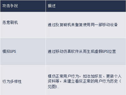 在陌陌的平台上(shàng),欺詐分子利用以上(shàng)技(jì)術(shù)結合陌陌提供的“附近的人(rén)”的功能,發布spam消息或進行(xíng)假冒商品的釣魚活動。他們創建大(dà)量表面上(shàng)看似正常,并好似是來(lái)自不同地點的新用戶。實際上(shàng),這些(xiē)新用戶是欺詐分子利用惡意刷機和(hé)GPS模拟等手段注冊的虛假賬号。同時(shí),這些(xiē)spam帳号還(hái)有(yǒu)個(gè)養号期。 在養号期間(jiān), 欺詐分子會(huì)讓這些(xiē)spam賬号從事正常的用戶行(xíng)為(wèi),使這些(xiē)賬号表面看起來(lái)完全類似普通(tōng)用戶。當養号完成後,欺詐分子會(huì)開(kāi)始發動spam攻擊, 在這些(xiē)虛假賬号的頭像、個(gè)人(rén)說明(míng)、或個(gè)人(rén)信息中發送非法廣告和(hé)騷擾信息。這些(xiē)spam行(xíng)為(wèi)不加遏制(zhì),會(huì)嚴重地破壞陌陌的用戶體(tǐ)驗,并損害陌陌的品牌聲譽。