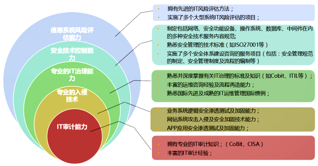 根據企業信息安全建設的步驟,我們把信息安全分成五個(gè)技(jì)術(shù)能力層級,如下圖所示:
