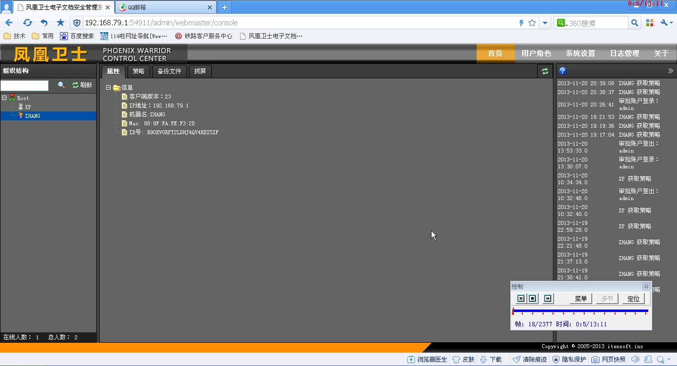 鳳凰衛士是安騰反洩密軟件的進階産品,在文檔守望者的基本功能上(shàng),将身份認證與權限管理(lǐ)嵌入系統中,并強化了自動備份功能。